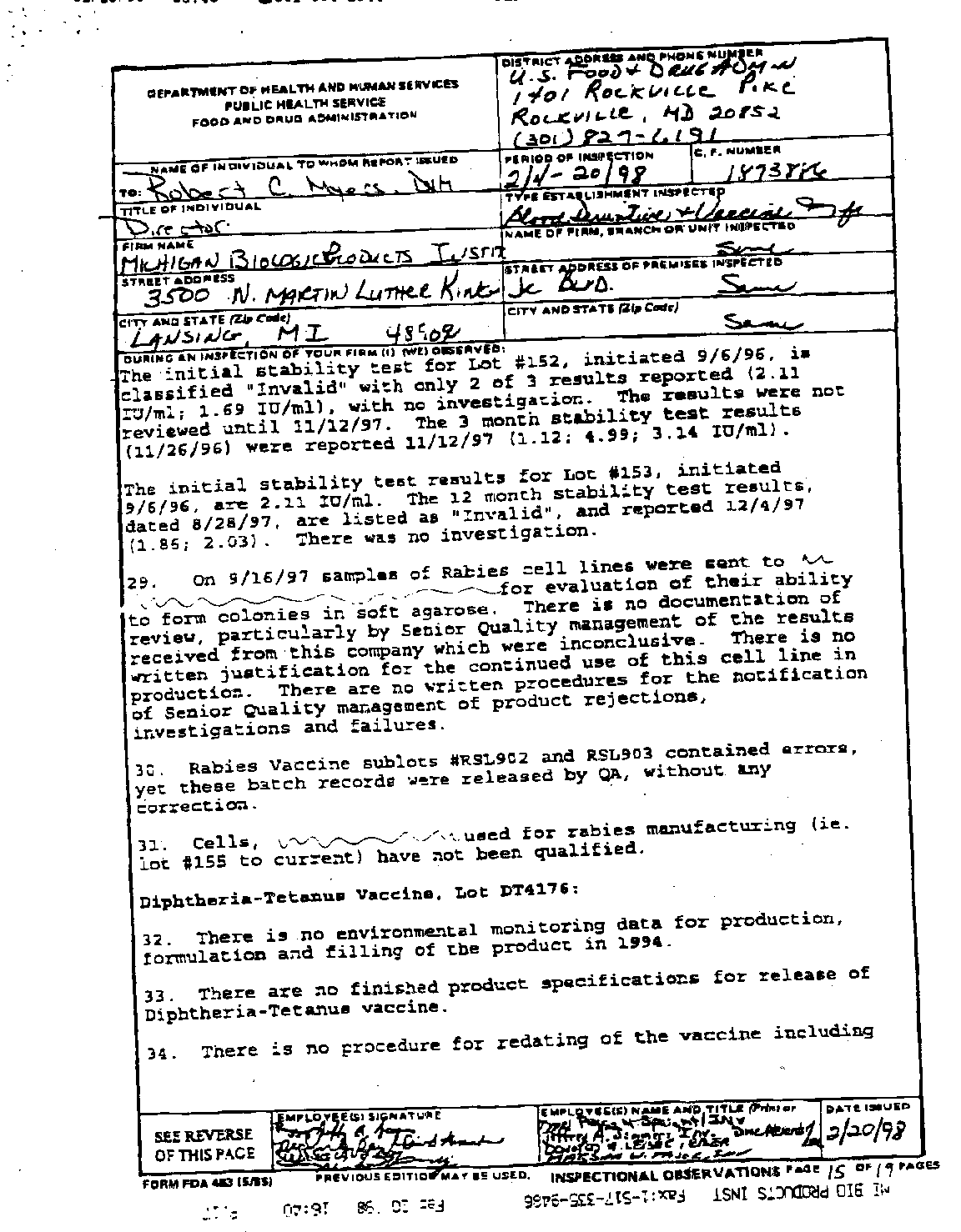 - FDA - ( Lansing, Bethesda, Rockville )